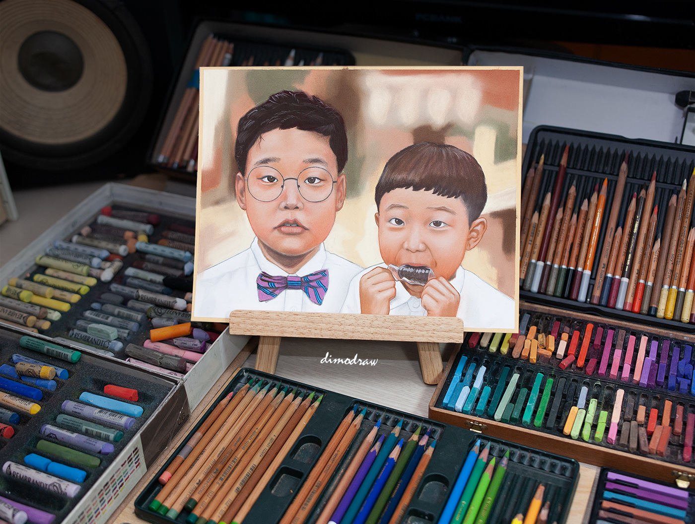 [KOREA] 파스텔 초상화(pastel pencil drawing) -귀여운 아이들 형과 동생 일반인 40x30
