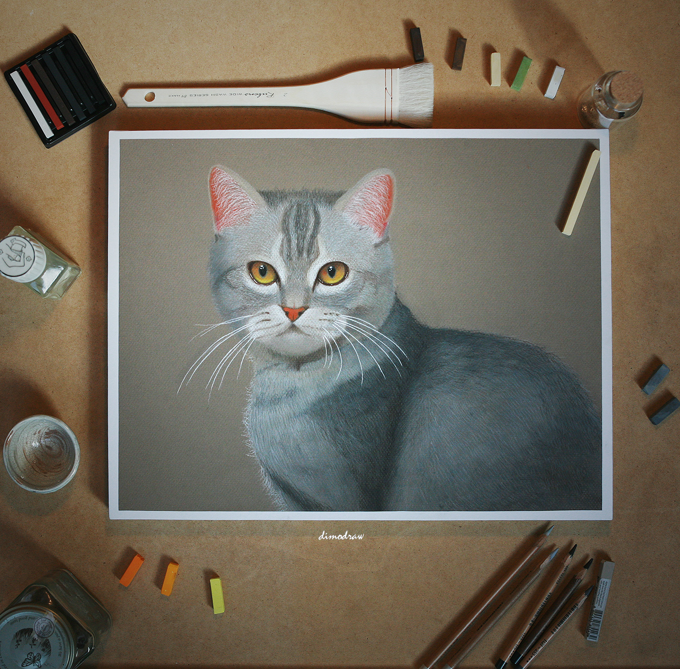[CAT] 연필 파스텔 초상화(pastel pencil drawing) -로고(LOGO)를 위한 고양이 정면 그림